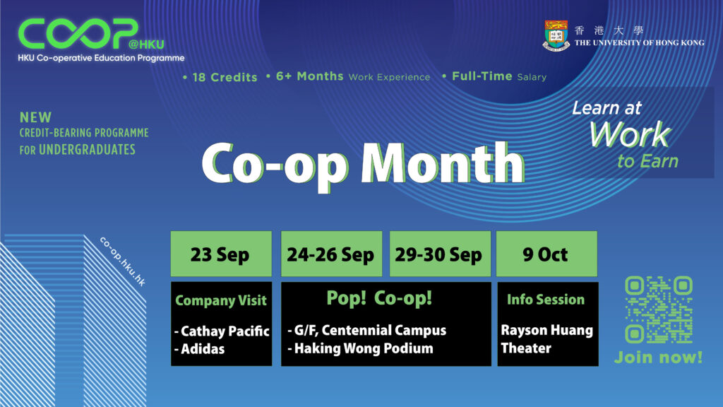 The Co-op Programme is an experiential learning initiative that allows students to gain hands-on experience through paid full-time employment for at least seven consecutive months. It underscores HKU’s commitment to providing students with experiential learning opportunities and preparing them for successful careers in their chosen fields.
